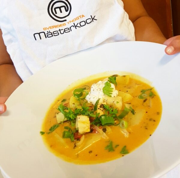 Idag gjorde hon en supergod Fisk och skaldjursgryta med liite coachning från min sida! (Recept kommer)