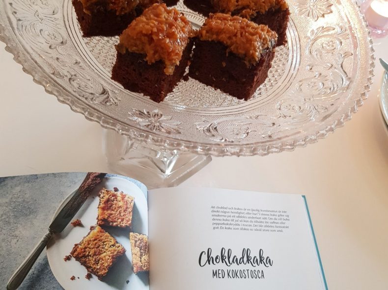Blanda samtliga ingredienser till toscan i en kastrull. Rör om och låt sjuda på medelhög värme i cirka 5 minuter. Ta av från värmen. Ta ut kakan ur ugnen och häll över kokostoscan. Grädda kakan ytterligare cirka 10 minuter, tills toscan fått en gyllenbrun färg. Ta ut och låt svalna helt innan du skär kakan i bitar.