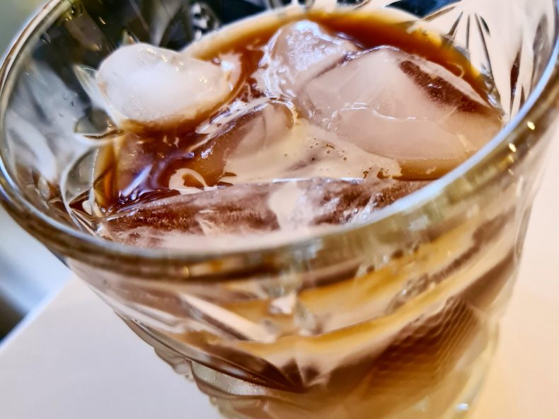 Svalkande och söt iskaffe med smak av choklad! Kallbryggt kaffe med kakao, kondenserad mjölk och vanlig mjölk blir en läskande iced mocha kaffe!