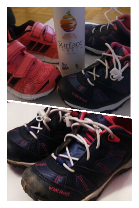 Måste bara dela med mig av en produkt som min vän Viveca på Viva-textil i Närpes säljer, Surface screen! Spraya på ex skor, soffor etc, helt unik produkt som är vatten-, smuts- och bakterieavvisande och gjord på 100% nedbrytbara beståndsdelar! Funkade kanon på barnens skor, fortfarande fint skick efter en dag i parken, och bara att skölja av under rinnande vatten!!!