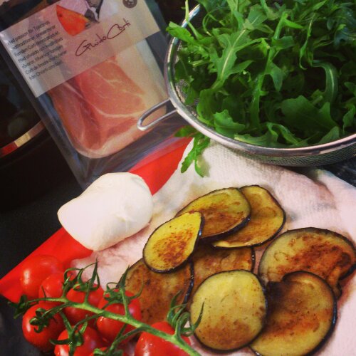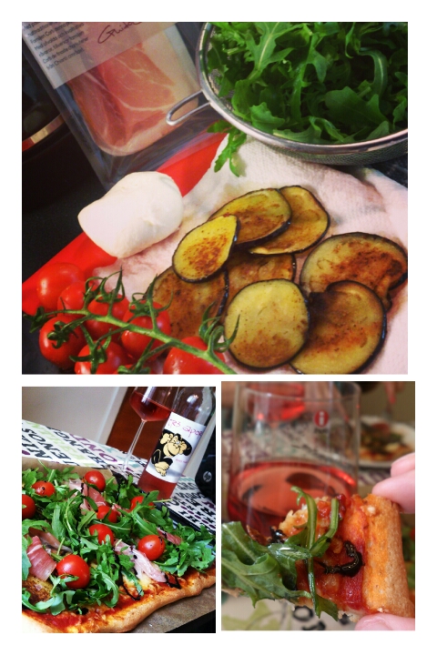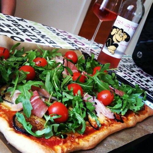 Oväntat besök? Då kan en färdig pizzarulle i kylen vara guldvärd! Bred ut tomatsås, skiva lite mozzarella och placera ut aubergin i skivor som du stekt i lite olja och kryddat med grillkrydda in i ugnen ca 15 min, när pizzan är gräddad strö över lite ruccola, parmaskinka och cocktailtomater, ringla över olivolja, balsamico och en gnutta salt! Såå enkelt och otroligt gott!