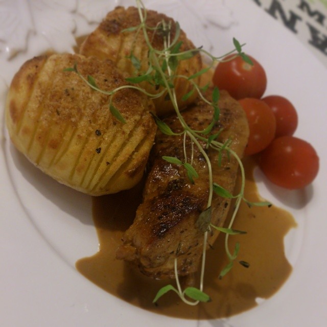 Sätt ugnen på 225 grader. Skala Potatisen och skär i tunna skivor, men inte hela vägen igenom. (Jag brukar lägga dem i en träslev så skär man inte i misstag hela vägen). Placera potatisen med den skårade sidan upp i en ugnsäker form, salta & krydda potatisen, klicka på lite smör på varje. Ställ i ugnen ca 25 minuter.