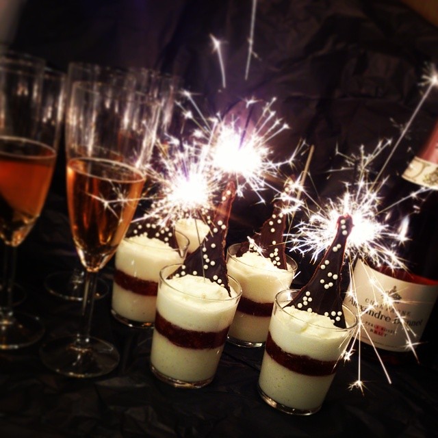 ”New Year in Paris” -Vaniljpannacotta med Champagne-& Jordgubbsmarmelad toppad med champagnemousse