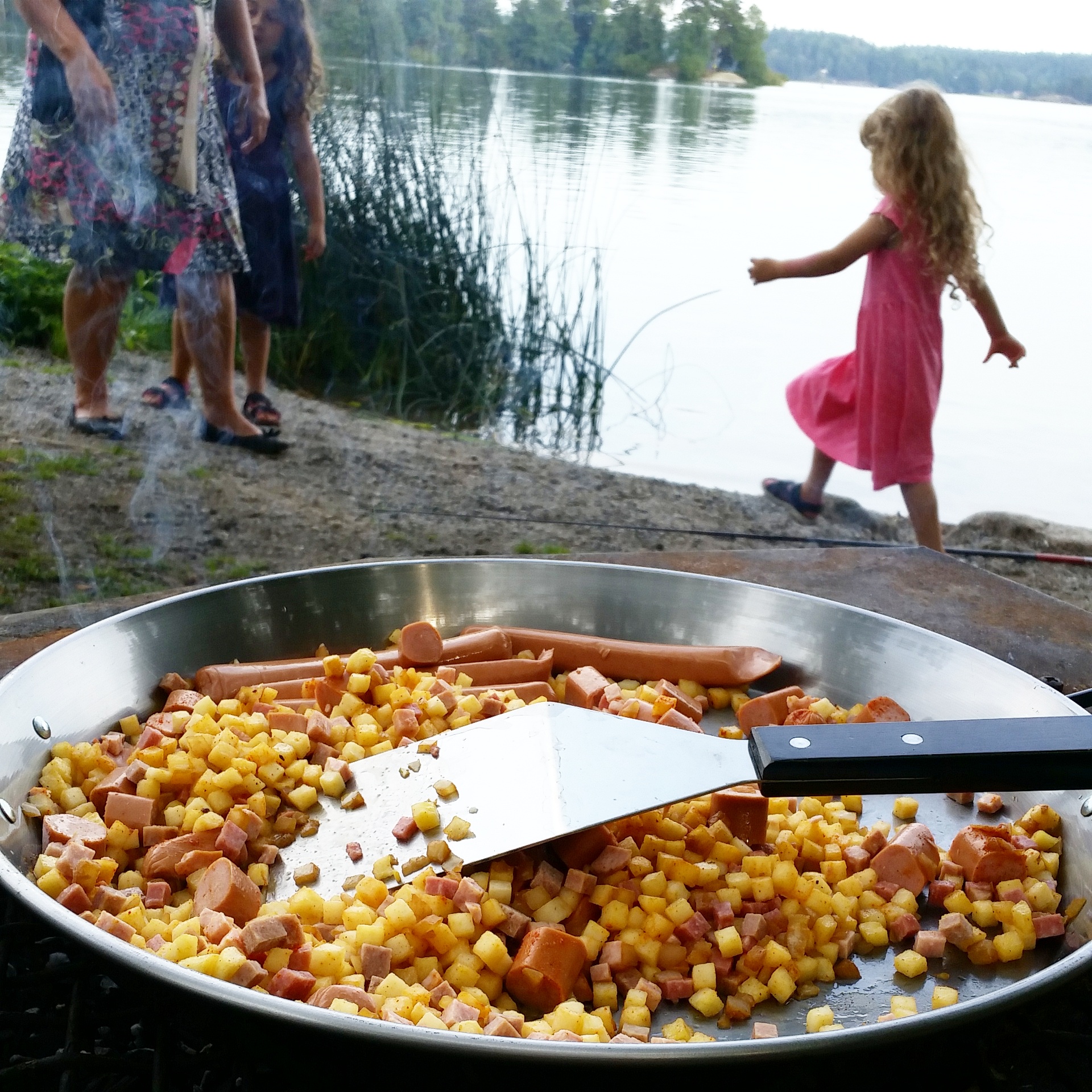 Köpte en muurikka när vi var i Finland som vi invigde på klipporna i Sundby Gård! Riktigt mysigt, barnen fiskade med mormor och morfar medan jag stekte pyttipanna och sen pannkakor över öppen eld! Vore perfekt om det inte hade varit för alla miljarder getingar som skulle dela stunden med oss, de är helt galna denna sommar?!