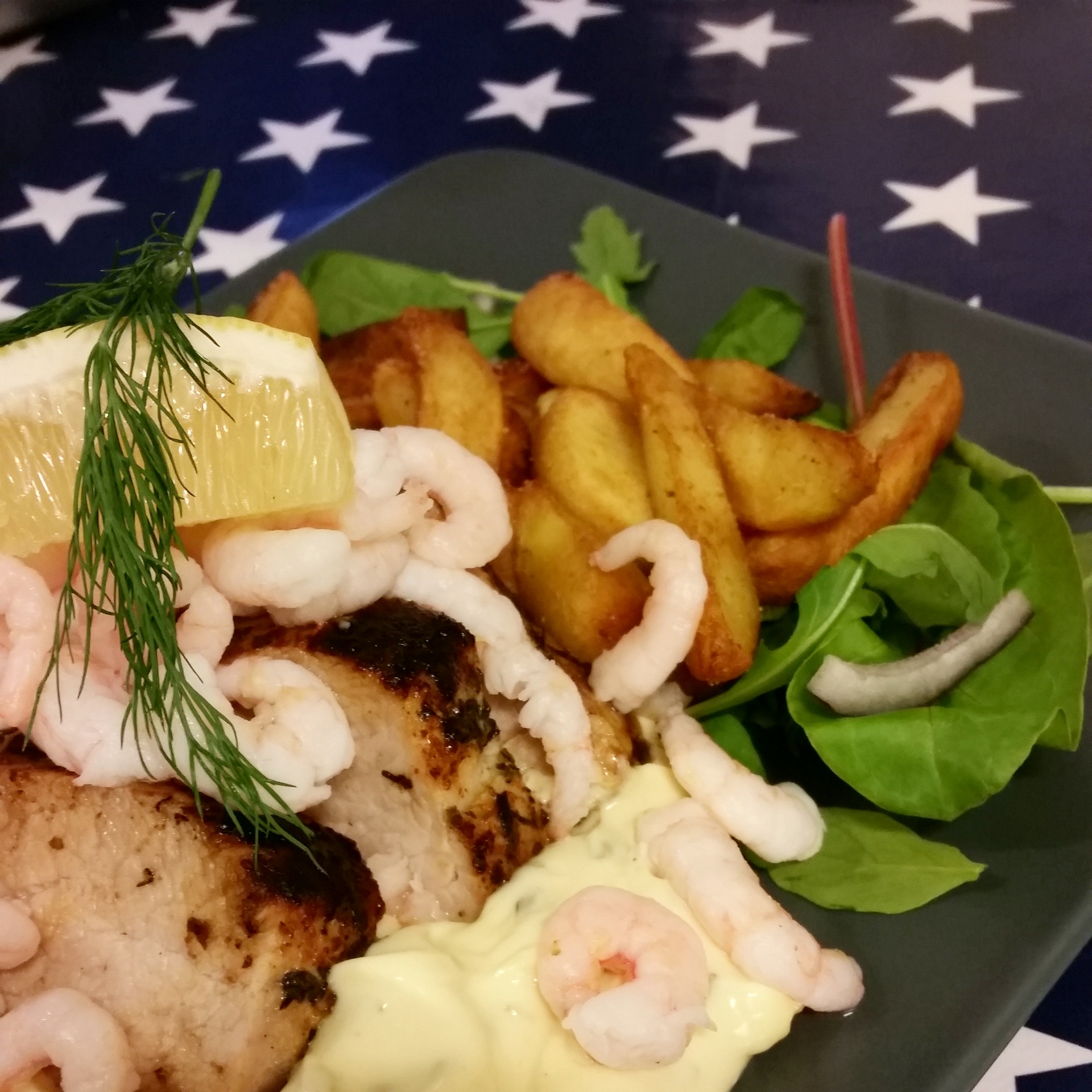 Har fastnat för smakkombinationen kött, räkor & Bearnaisesås, sååå gott! 🙂 I Helgen testade vi ett underbart Cava (mousserade vin) La Vida Al CampEkologiskt, Fruktig, ungdomlig doft med inslag av gröna äpplen, kex, honungsmelon, citrus och gummi. (109 kr) som passade alldeles utmärkt till!  Billigt ekologiskt mousserande med en lyxig känsla, så den vill jag rekommendera er!