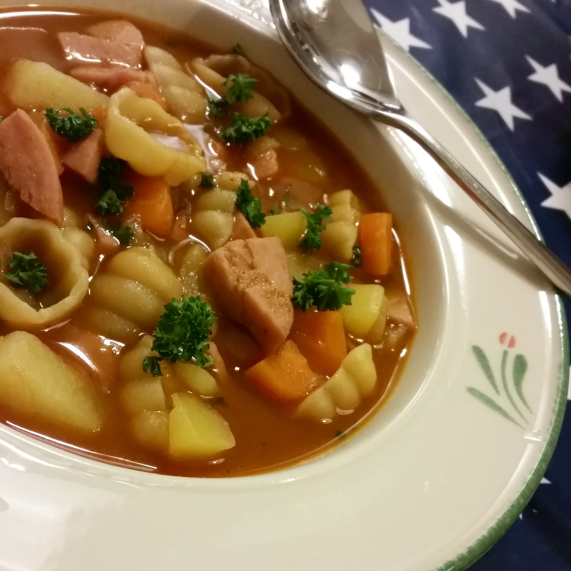 Korvsoppa med pasta i, låter knas men smakar såå gott! Ungarna var helt galna i denna soppa, 2 portioner var, 2 dagar i rad så testa den! 🙂 Enkel att göra och väldigt billig! Hittade receptet hos fina Linda.