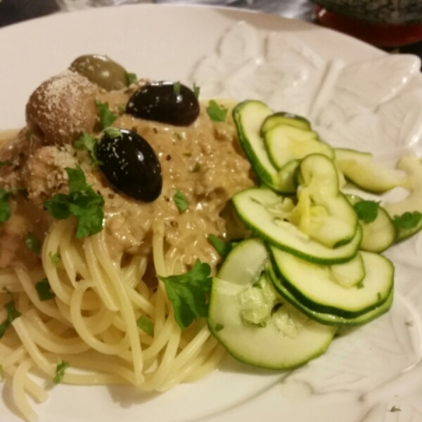 Hittade ett recept i gömmorna som vi testade för ett tag sen, marinerad zucchini var riktigt gott! (Åts här med tonfiskpasta)