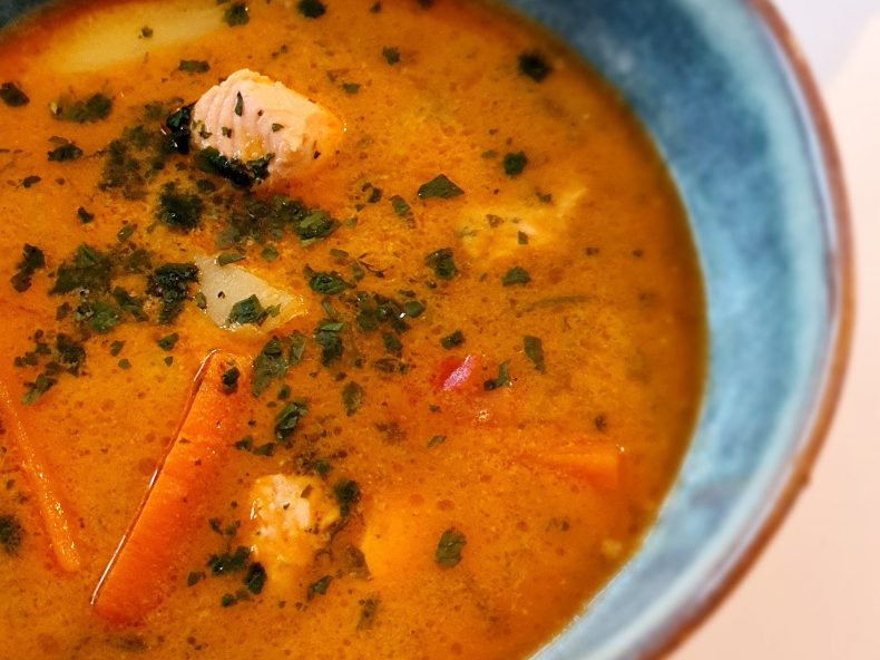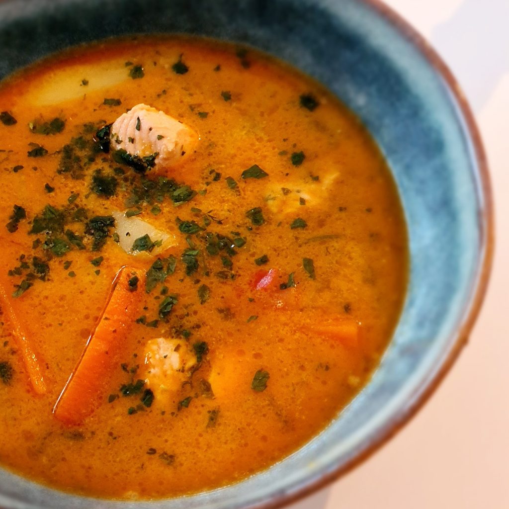 Krämig laxsoppa med kokosmjölk och rödcurry