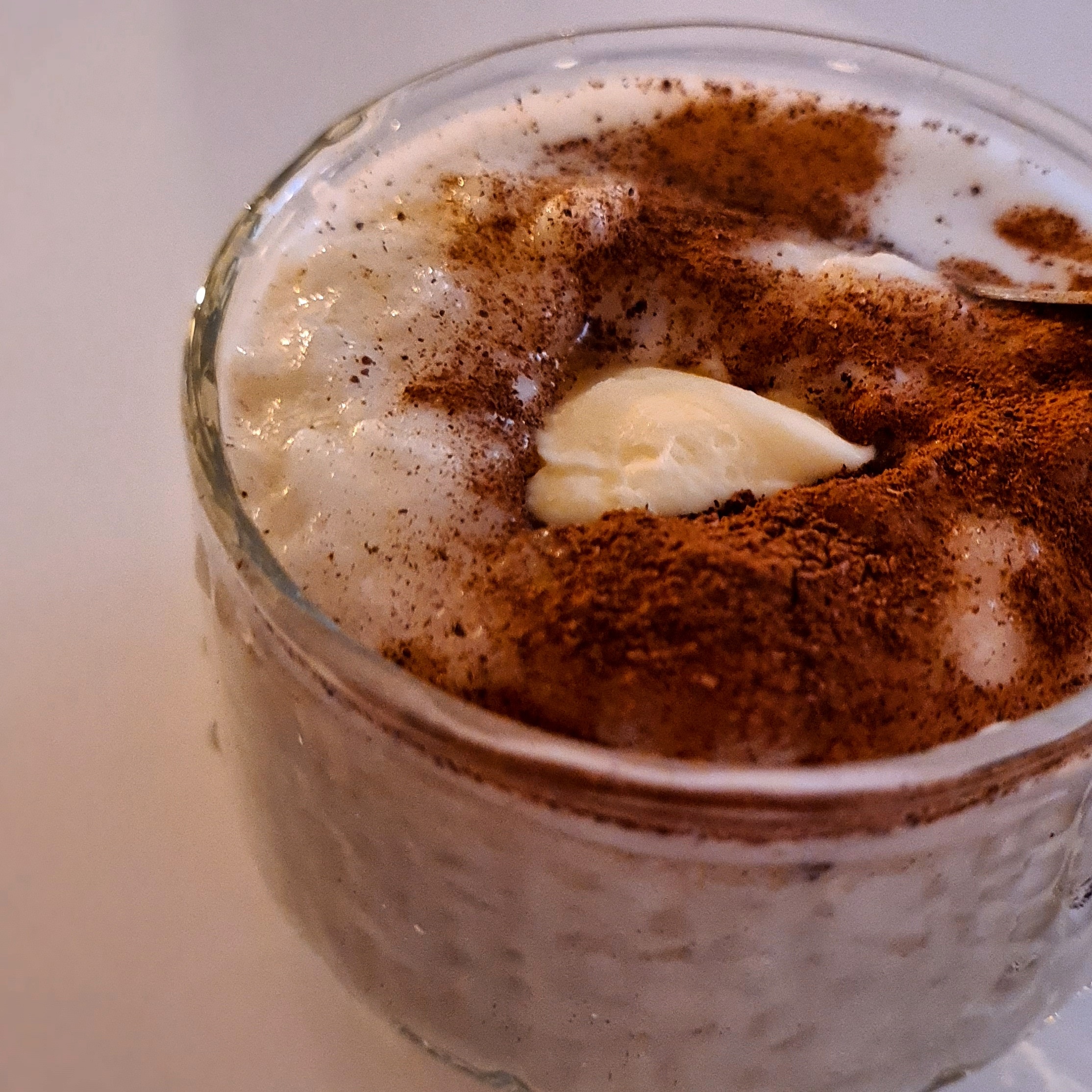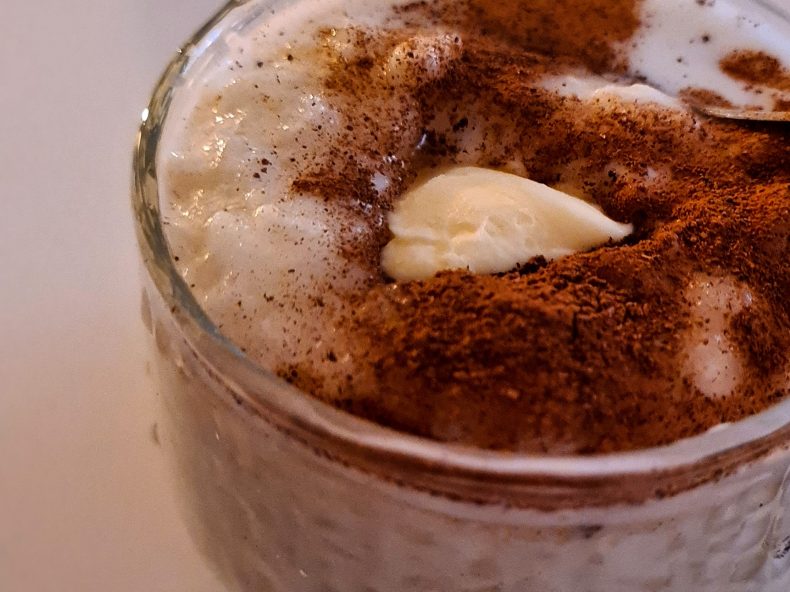 3. Vänta 1.5 timme och rör om. (Det tunna ”täcket” på toppen kan tas bort men är ej nödvändigt – det är gott.)