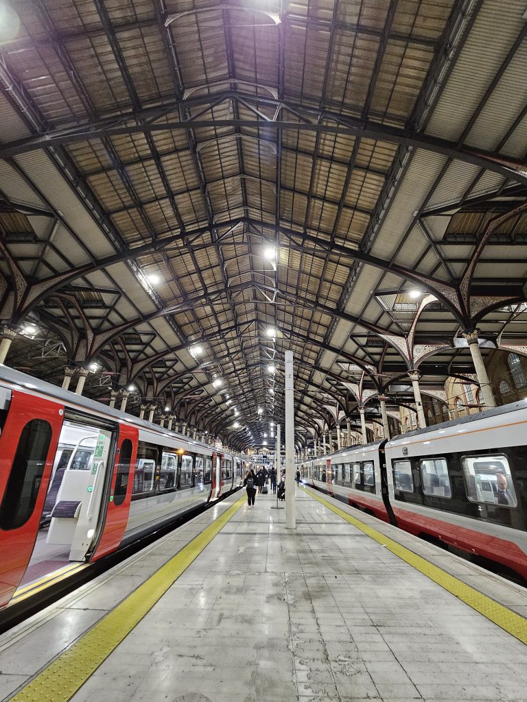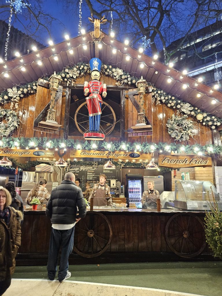 En otroligt juldekorerad stad men otroligt mycket folk! Vi tog flyg till Stansted och därifrån är det enklast att ta sig med Stansted express tåg som tog ungefär 45 minuter till Liverpool station (Kostade ca 400 kr tur och retur per person).